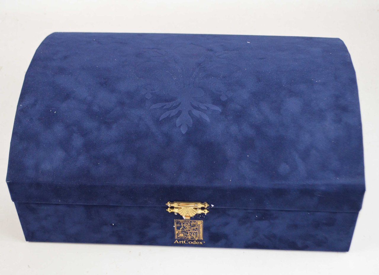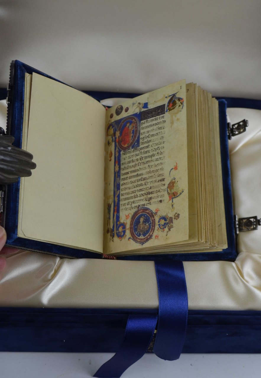 Cm. 15, cc. 61. Con 33 miniature. Sontuosa legatura in velluto con piatti riccamente decorati in rilievo e con fermagli di chiusura. Insieme ad un volume di commento. I due volumi entro cofanetto originale. Perfetta conservazione, in stato di nuovo. Entro imballaggio originale in polistirolo e cartone. Edizione impressa in 999 esemplari numerati a mano (ns. n. 508). Bella ristampa in facsimile del manoscritto conservato presso la Biblioteca Riccardiana di Firenze.