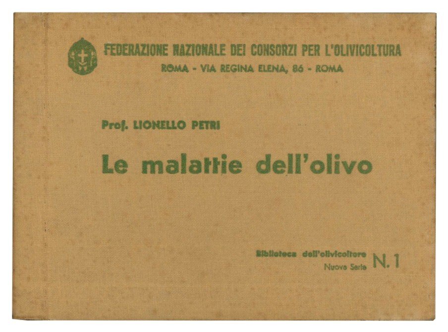 Mm. 121x170. Pp. 27, XII tavv. a colori fuori testo, [6]. Rilegato in tela editoriale con titolo al piatto anteriore. Rilegatura parzialmente staccata dal corpo del testo. Opera appartenente alla collezione 'Biblioteca dell'olivicoltore', nr. 1.