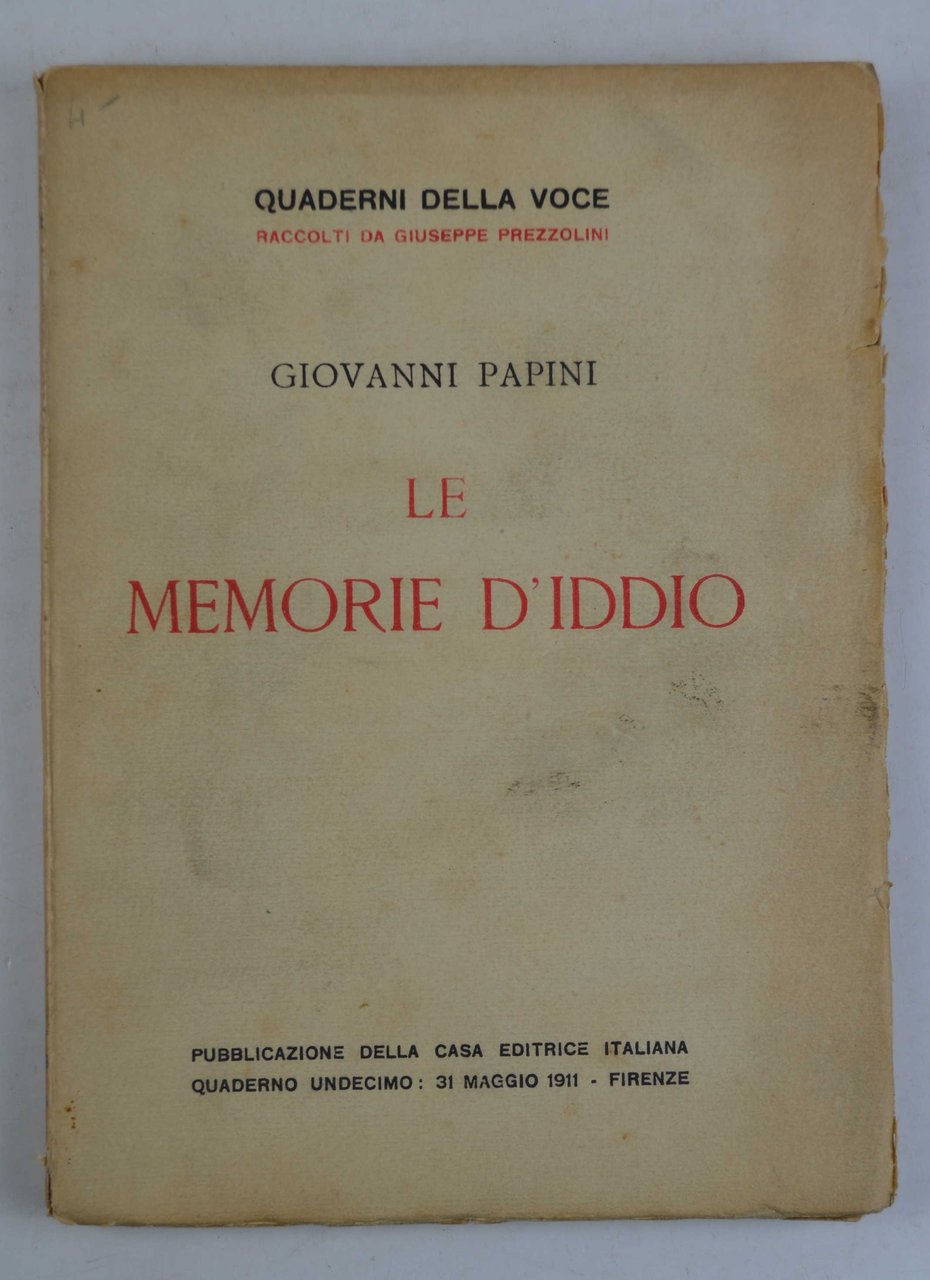 Cm. 19,6 x 14,2, pp. 88. Bross. edit. Trascurabili difetti e una firmo di possesso al frontespizio. Esemplare ben conservato. Collana Quaderni della Voce raccolti da Giuseppe Prezzolini. Prima edizione.