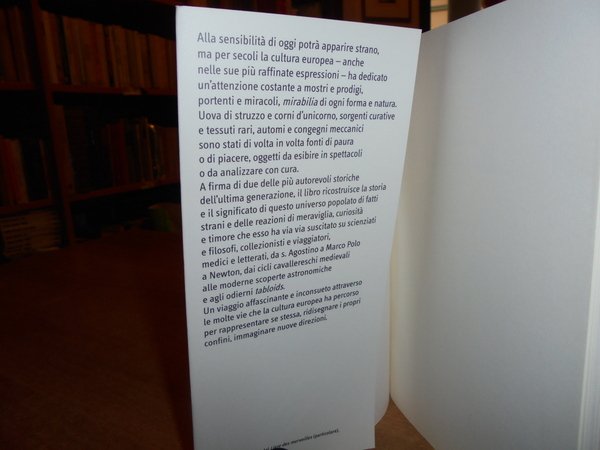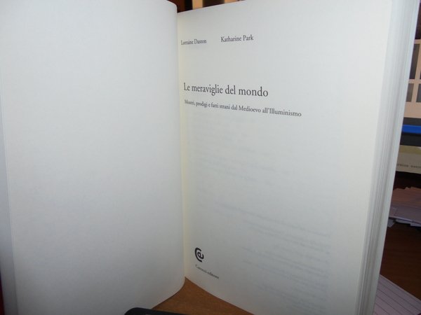 LORRAINE, DASTON - KATHARINE, PARK. Roma, Carocci Editore, 2000. Le Meraviglie del Mondo. Mostri, prodigi e fatti strani dal Medioevo all' Illuminismo. In-8° piccolo, cartoncino edit. con risvolti. 457 pp. con numerose illustrazioni in tavole fuori testo. Esemplare come nuovo. Neg. mob. bianco cassa.