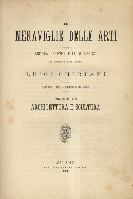 Le Meraviglie delle Arti. Con numerose note ed aggiunte di Luigi Chirtani. Nuova edizione italiana illustrata da 313 (+) 228 incisioni. Volume I: Architettura e Scultura - Volume II: La Pittura.