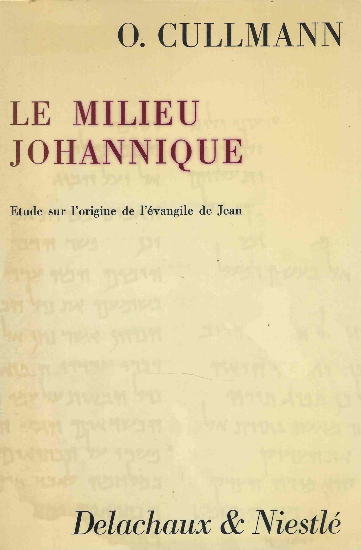 Le Milieu Johannique. Etude sur l'origine de l'évangile de Jean