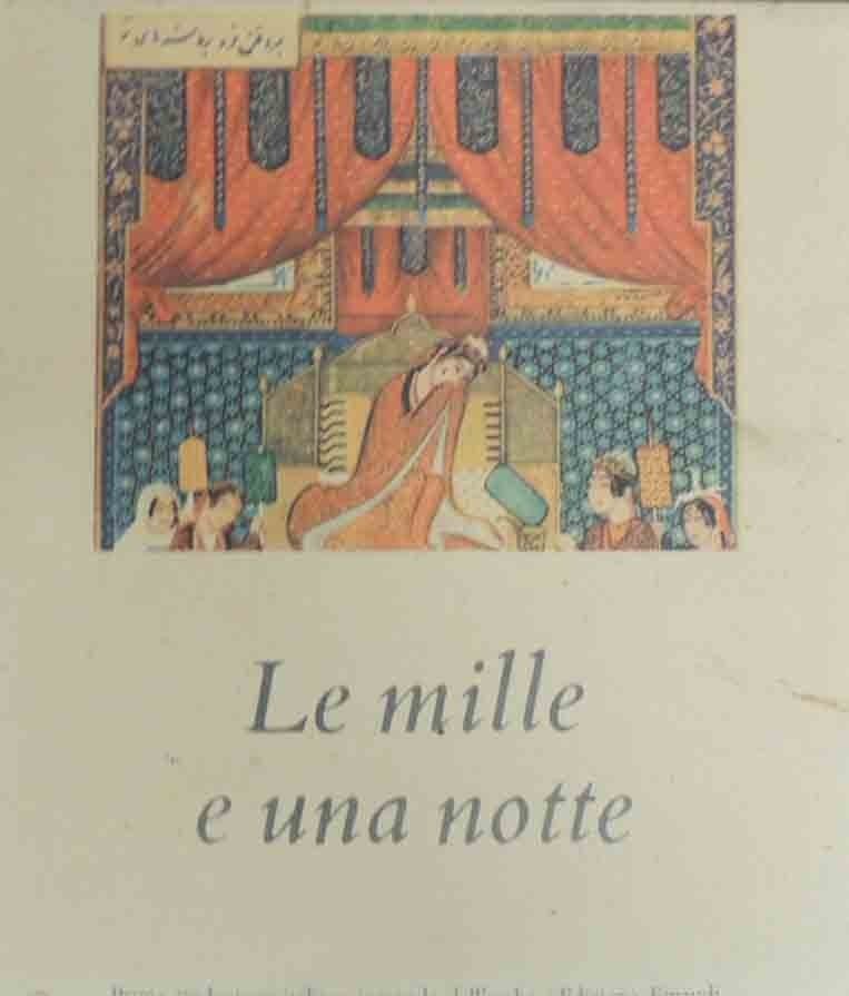 Le mille e una notte, prima versione italiana integrale dall’arabo diretta da Francesco Gabrieli, a cura di Antonio Cesaro, Costantino Pansera, Umberto Rizzitano, Virginia Vacca, Giulio Einaudi Editore, s.l. (ma stampato a Torino, presso la Tipografia Torinese) 1951, terza ed., 4 voll., pp. LXVI, 2933, 31 c. di tavv. f.t. ill. col., cm 23, tela ed. con titoli e fregi in oro al dorso, fregi in oro al piatto e cofanetto in cartone ed. Collana I millenni, n. 5. Volume primo, traduzione di Antonio Cesaro. Volume secondo, traduzione di Virginia Vacca. Volume terzo, traduzione di Costantino Pansera. Volume quarto, traduzione di Umberto Rizzitano. Minime fioriture, carta lievemente brunita, per il resto molto ben conservato.