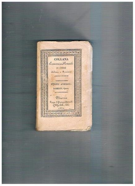 Tre volumi in-24° gr. cm. 14.5 pp. CCII-62-294-301, bross.e dit. con piccoli guasti a quella posteriore del primo volume.
