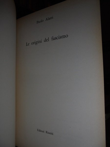 Paolo, Alatri. Editori, Riuniti (Bologna Steb, 1961). Le origini del fascismo. In-8°, cartonato edit. xxiv, 435 pp. con numerose ill. in bianco e nero in tavole f.t. Con gli usuali segni del tempo, tagli leggermente ingialliti. Uff. pacco A. carc.