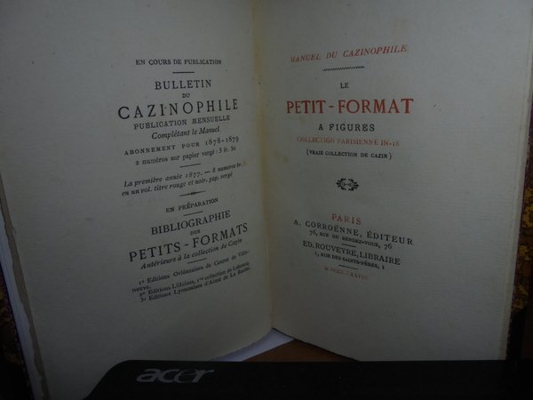 Manuel du Cazinophile. Paris, A. Corroénne éditeur, 1878 - 1879. Le PETIT-FORMAT a Figures Collection Parisienne in-18 (vraie collection de Cazin). In-12° (16 x 10,5 cm.), m. pelle con large punte titolo e fregi in oro al dorso, copertine originali conservate. (iii), 178, (2) pp. con alcune illustrazioni nel testo. Perfetto esemplare. Uff. A - I - 1 - 2