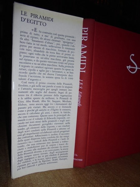I.E.S. Edwards. Milano, Il Saggiatore, 1962. Le Piramidi d' Egitto. In-8° piccolo, tela edit. con sovracopertina. 275 pp. con 23 fotografie, 32 disegni, 1 carta geografica. Sovracopertina con lievi segni d' uso e del tempo. Libro in ottimo stato di conservazione. Uff. TV. mob. nostro