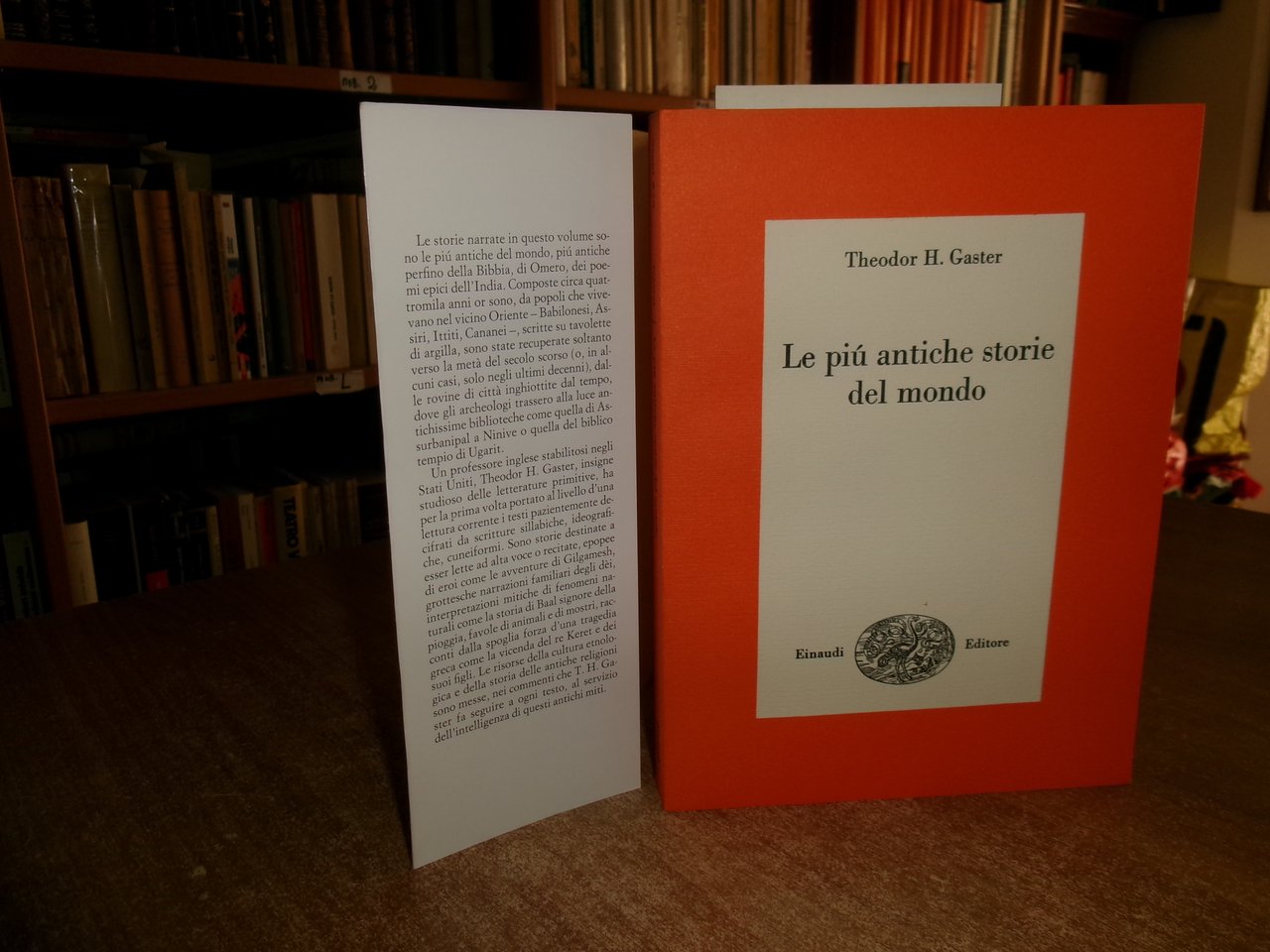 Theodor H. Gaster. Torino, Einaudi, 1973. Le più antiche storie del mondo. In-8°, br. con sovracopertina. 244 pp. con 10 tavole fuori testo. In ottimo stato di conservazione. Neg. mob. bianco cassa