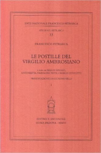 A cura di Marco Baglio, Antonietta Nebuloni Testa, Marco Petoletti. Presentazione di Giuseppe Velli. Padova, Editrice Antenore 2006, 2 tomi, cm.16,5x25, pp.XII,1042, brossura intonsi, Ente Nazionale Francesco Petrarca. Collana Studi sul Petrarca,33. STATO: NUOVO. EAN: 9788884556011