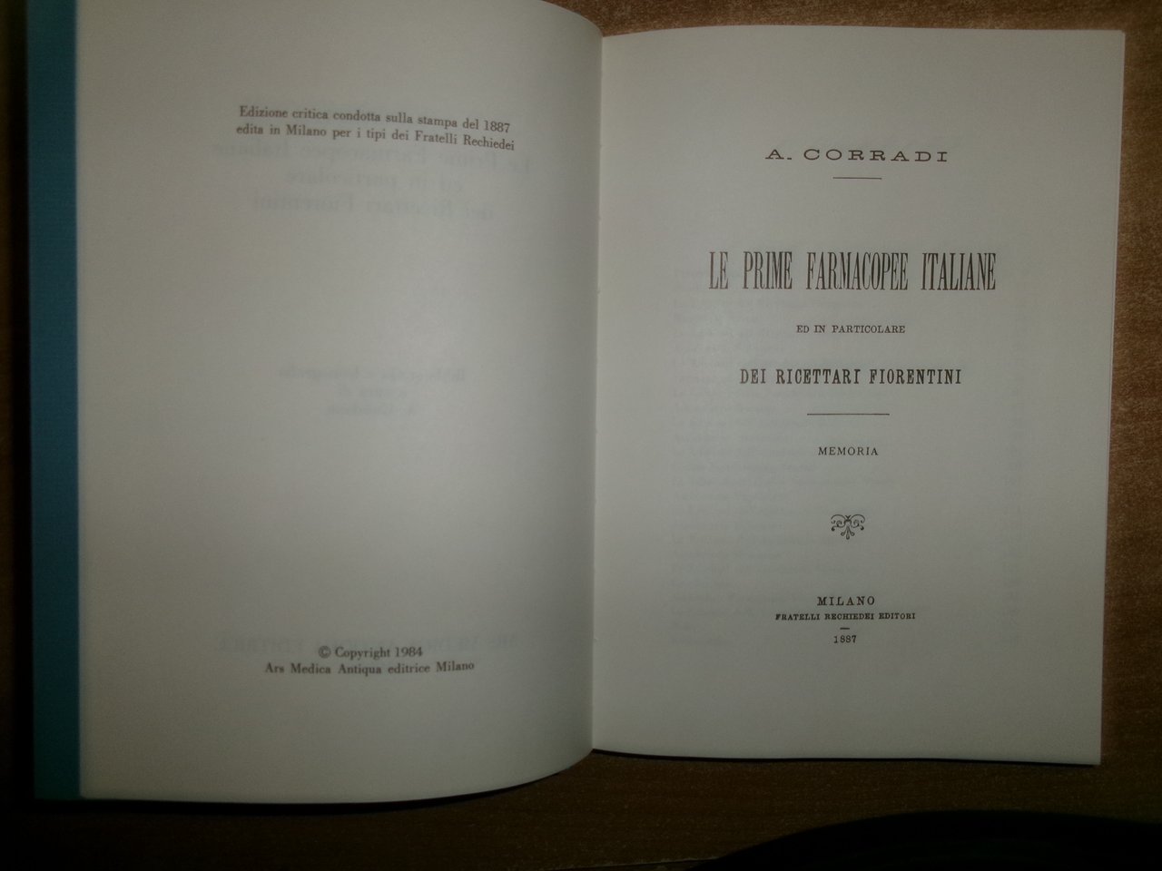 Le Prime Farmacopee Italiane...dei Ricettari Fiorentini memoria A. Corradi 1984