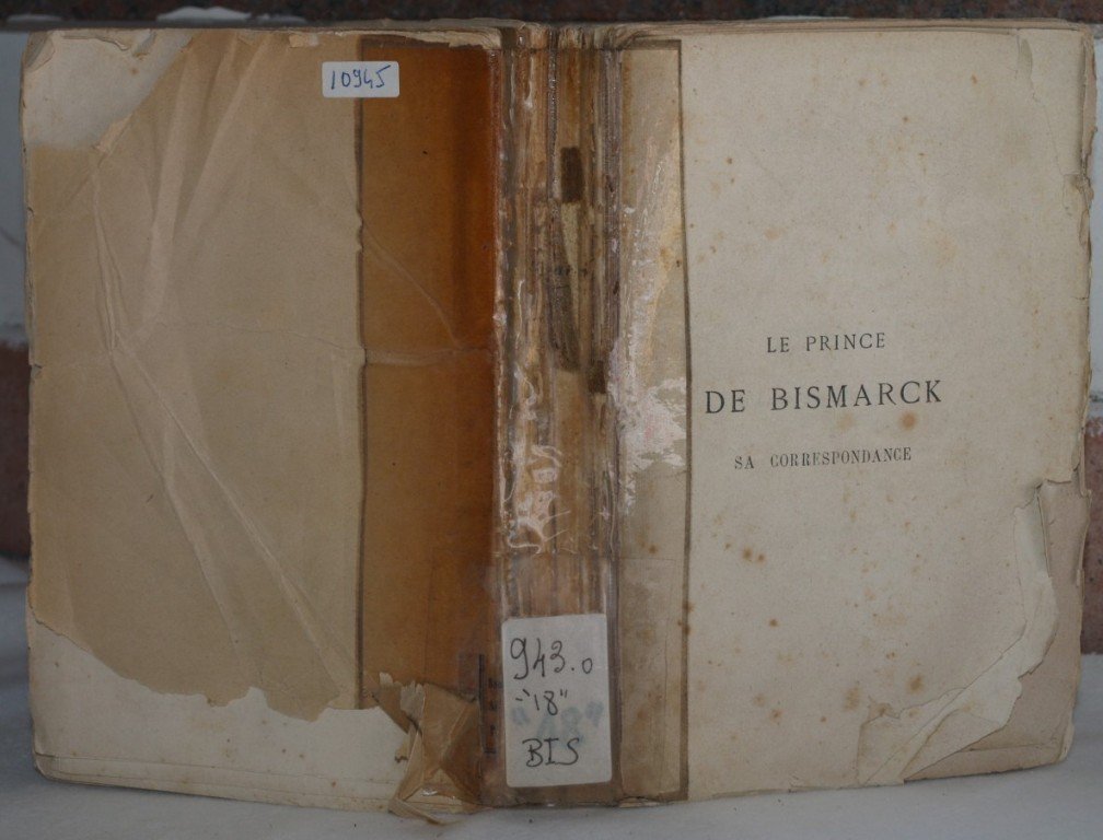 In 8 Dim. 19x13 cm. Pp. XIX+386. Opera completa in un volume, uno studio sul Principe di Bismarck dello scrittore francese Antonin Proust (1832-1905). L'opera è senza data ma del 1876. Si tratta della raccolta della corrispondenza di M. de Bismarck messa in ordine storico attraverso la quale possiamo ricostruire la sua vita. Nella prima parte del libro la storia degli antenati di Bismarck. Copertina mancante. Legatura in cattive condizioni. All'interno le pagine si presentano in buone condizioni con fioriture, margini usurati e qualche strappo. complete work in one volume, a study about the Prince of Bismarck written by the french writer Antonin Proust (1832-1905). The book is not dated but of 1876. It is a collection of the correspondance of M. de Bismarck put in historical order. Thanks to this we can understand his life. In the first part of the book the history of the ancestors of Bismarck. Cover is missing. Binding in bad conditions. Inside pages are in good conditions with foxings, worn edges and some tear.