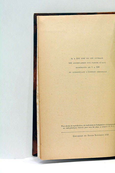 338 pages. (23x14,5cm). Demi-cuir. Dos à nerfs orné. Plats un peu frottés. Coins légèrement émoussés. Couverture originale conservé. Papier bruni. Exemplaire bien conservé. Exemplaire numeroté. ExLibris de Marcel Blazy.