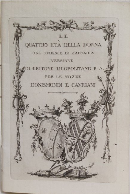 LE QUATTRO ETA' DELLA DONNA dal tedesco di Zaccaria. Versione di Critone Licopolitano P. A. per le nozze Donismondi e Cavriani.