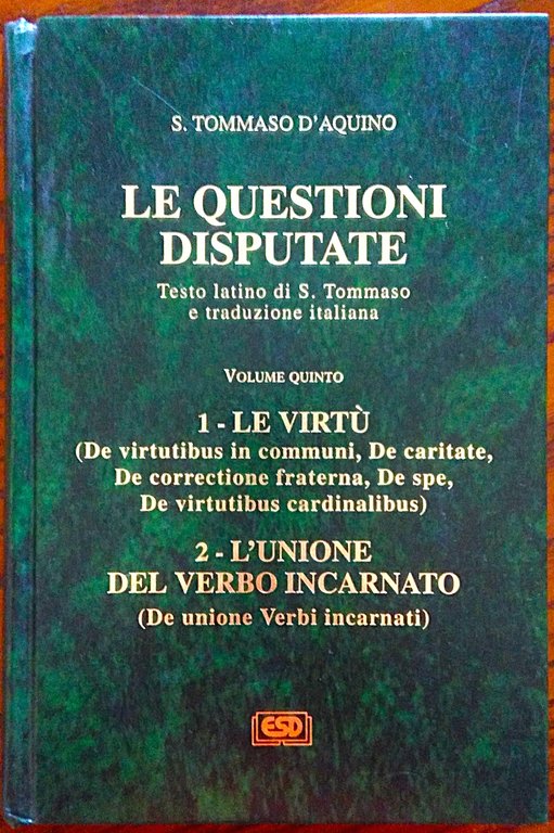 Le questioni disputate. Testo latino di S. Tommaso e traduzione italiana. Volume quinto. 1- Le virtu' ( De virtutibus in communi, De caritate, De correctione fraterna, De spe, De virtutibus cardinalibus). 2- L'unione del verbo incarnato. (De unione Verbi incarnati). Introduzione di P. Abelardo Lobato O.P. Traduzione di P. Pietro Lippini e P. Roberto Coggi.