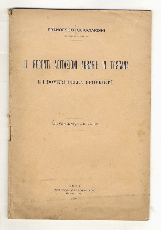 Le recenti agitazioni agrarie in Toscana e i doveri della proprietà. Dalla Nuova Antologia - 16 aprile 1907.