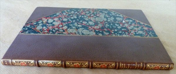 Un volume de format petit in 4° de 1 f. bl.; 1 f. (faux-titre et justification); frontispice de Jules Després gravé par Abot; 1 f. titre; 4à pp.; texte illustré en encadrement par Habert Dys. Reliure de l'époque en demi maroquin à coins violine; dos mosaïqué à 5 nerfs richement orné; date en pied. Couverture entièrement conservée. Tête dorée. Envoi autographe de Guy de Maupassant à un certain Monsieur Yrondy (le photographe?). Exemplaire N° 943/1000 sur vélin du Marais après 40+10 Japon. Tirage total à 1050 exemplaire. Infimes défauts à la reliure. Très pâles traces de rousseurs sur la couverture. Exemplaire désirable.