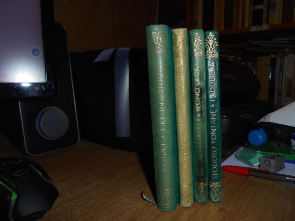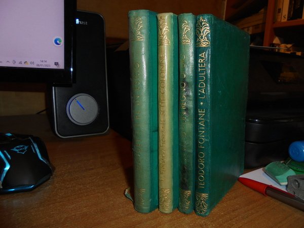 Venceslao, Fernandez - Alfonso Daudet - G. Tharaud - T. Fontane. Milano, Rizzoli - 1934-36-33-35. Le Sette Colonne - I Re in esilio - Un Regno di Dio - L' adultera. 4 volumi in-16°, cop. edit. con fregi e titoli in oro al dorso. 268, (2) pp.; 402, (1) pp.; 218, (1) pp; 214, (1) pp. Ben conservati. Uff. scat. 1 Tin.