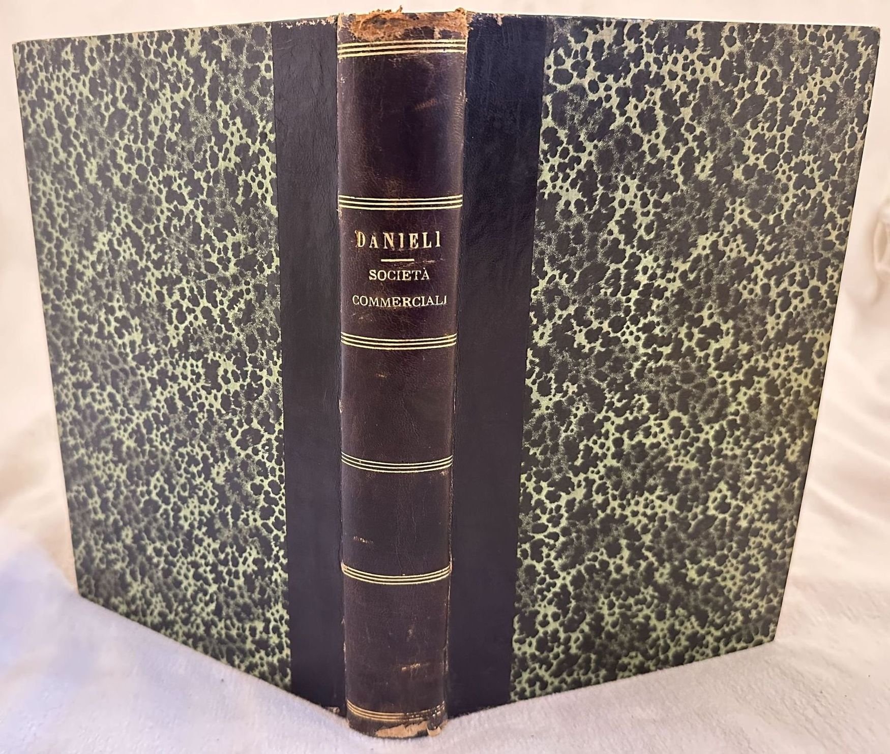 Edizione del 1884 di questa opera di diritto di Gualtiero Danieli sulle società commerciali e il nuovo codice di commercio diritto transitorio. Siamo in possesso del solo volume primo: commento al titolo IX, libro 1 delle Società e delle Associazioni Commerciali. In ottime condizioni. Copertina in mezza pelle con titolo e decorazioni in oro al dorso in ottime condizioni generali con lievi usure ai margini e dorso. Legatura in buone condizioni. All'interno le pagine si presentano in buone condizioni con fioriture. In 8. cm 23,5x15,5. Pp. 516Edition of 1884 of this work of right by Gualtiero Danieli about trade societies and the new code of trade. We only have the first volume: comment to title IX, book 1 of the Società e delle Associazioni Commerciali. In very good conditions. Half leather coeval cover with gilted title and decorations in the spine in very good conditions lightly worn in the extremities. Bindign in good conditions. Pages in good conditions with foxing. In 8. cm 23,5x15,5. Pp. 516