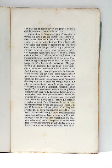 52 pages. (18x11 Cm). Broché. Couverture imprimée. Plats déreliés. Rousseurs. Petites déchirures. Le Docteur Caffe était, entre autres, Chef de la Clinique Ophtalmologique de l'Hotel-Dieu de Paris. L'amaurose comprend tout affaiblissement ou perte de vue.