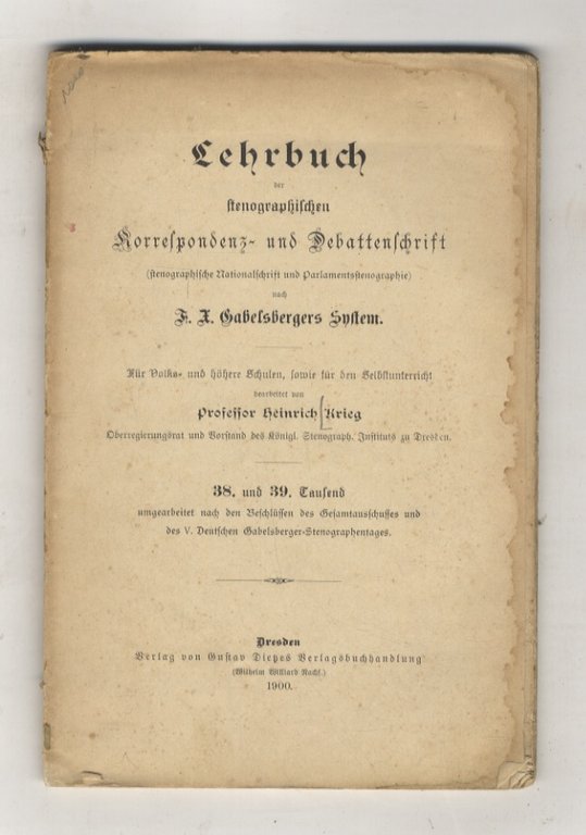 Lehrbuch der stenographischen Korrespondenz- und Debattenschrift (stenographische Nationalschrift und Parlamentsstenographie) nach F. X. Gabelsbergers System. Für Volks- und höhere Schulen, sowie für den Selbstunterricht bearbeitet [.].