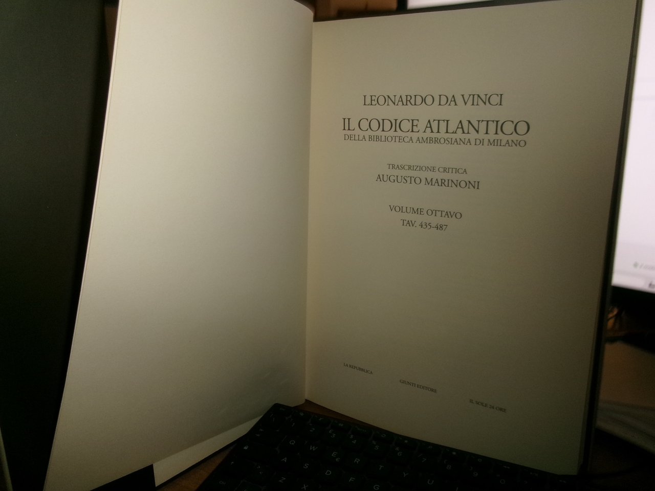 LEONARDO DA VINCI. Il Codice Atlantico Volume 8. Milano, Amilcare Pizzi, 2006. In-4° grande, cartonato edit. con sovracopertina. Tavole 435-487 - Testo: da pag. 140 a pag. 287. con tavole in bicromia f.t. Ottimo stato Neg. sport 1 da Vinci.