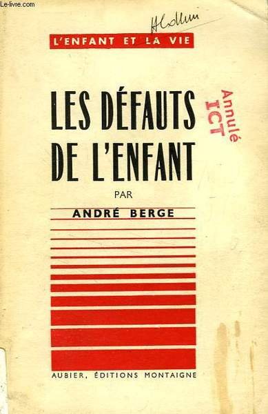 Aubier - Montaigne. 1953. In-12 Carré. Broché. Bon état. Couv. légèrement passée. Dos satisfaisant. Intérieur acceptable. 220 pages.Etiquette de code sur le dos. Tampons et annotations de bibliothèque sur le 1er plat et en page de titre. 1er plat légèrement taché. 'L'Enfant et la vie'. Nouvelle édition revue et augmentée.