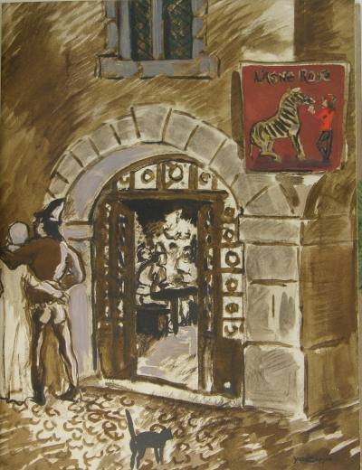 Club bibliophile de France, 1942. Deux ouvrages dans un cartonnage éditeur : un in/4 reliure demi-velin à coins à bradel, titre doré sur le dos, 24 illustrations de Yves Brayer, et un petit volume in/16 en plein velin, nom et date manuscrits en fac-similé de l'édition de 1533. Exemplaire numéroté sur vélin de Renage. Etui partiellement déchiré en base. Monod 11270.