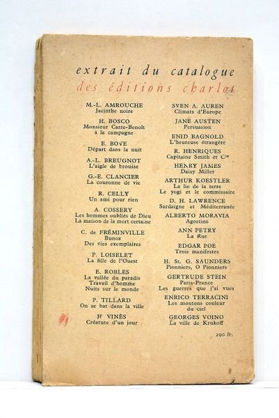 279 pages. (19x12cm). Broché. Non rogné. Couverture imprimée. Rousseurs. Charnière fendue. Pages demi-détachées. Bon état intérieur.