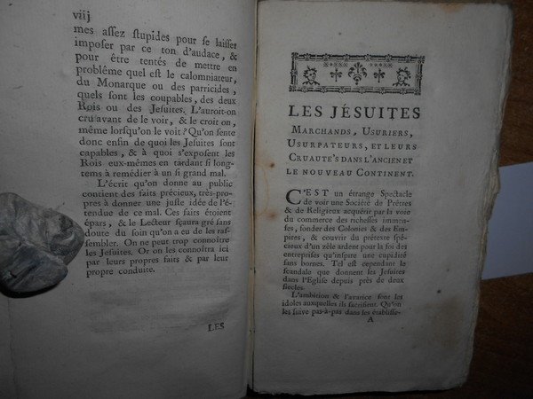 LES JESUITES MARCHANDS, USURIERS, USURPATEURS. ET LEURS CRUAUTÉS DANS L’ANCIEN & LE NOUVEAU CONTINENT. POUR SERVIR DE SUITE AU LIVRE INTITULÉ: “LES JÉSUITES CRIMINELS DE LÈZE-MAJESTÉ”