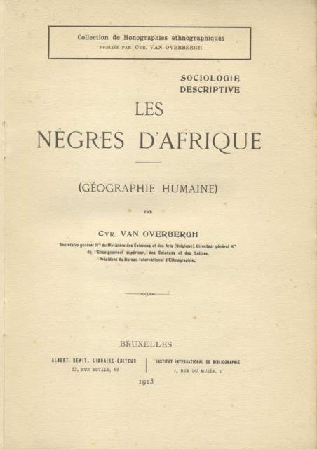 LES NÈGRES D'AFRIQUE. Sociologie descriptive. Géographie humaine. | Libri antichi e moderni | Van Overbergh Cyrille.