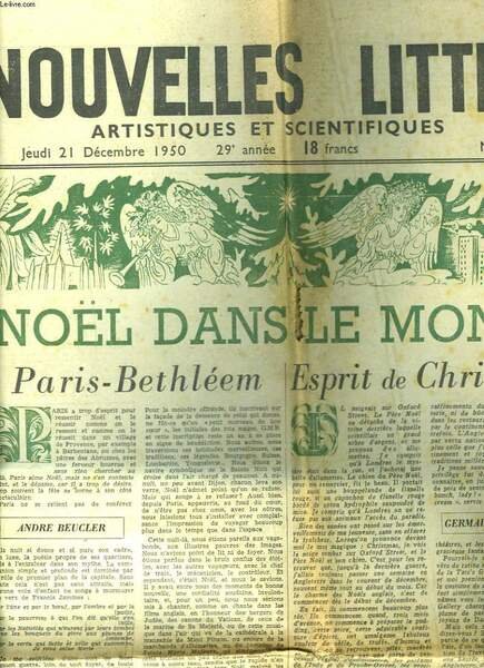 LES NOUVELLES LITTERAIRES ARTISTIQUES ET SCIENTIFIQUES N° 1216, JEUDI 21 DECEMBRE 1950. NOËL DANS LE MONDE. PARIS-BETHLEEM par ANDRE BEUCLER. ESPRIT DE CHRISTMAS par GERMAINE BEAUMONT / AFRIQUE, CANTIQUE DE MINUIT par RENE GUILLOT / .