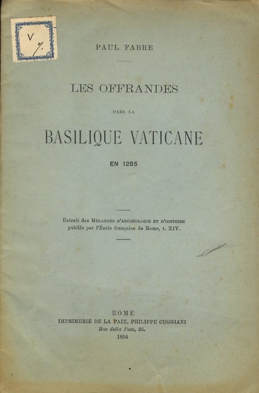Rome, Cuggiani, 1894, in-8, brossura editoriale, pp. 18. Estratto.