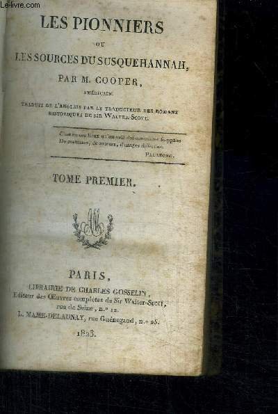 LES PIONNIERSOU LES SOURCES DU SUSQUEHANNAH - TOME PREMIER