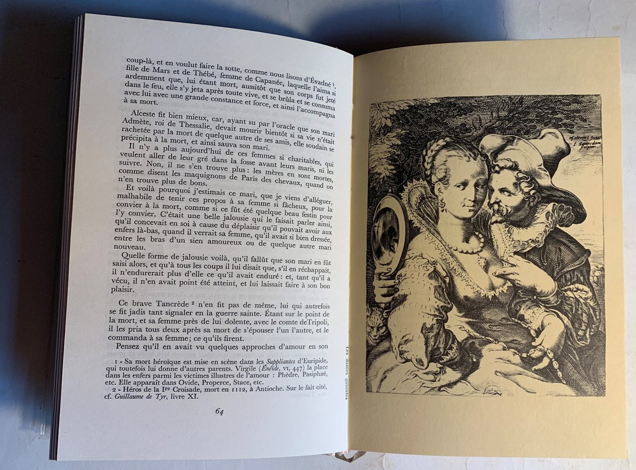 ed. s.d. (6 aprile di anno imprecisato) con tiratura limitata: "Cet ouvrage achevé d'imprimer le 6 avril sur lespresses des Imprimeries Firmin-Didot au Mesnil-sur-l'Estrée a été relié dans les Ateliers Bonnet-Madin a Dreux d'après les maquettes de Claude Soalhat et la mise en pages de Catherine du Vivier. Le tirage des illustrations a été exécuté en offset par l'Imprimerie Grou-Radenez a Paris. Composée en caractères Baskerville corps neuf et tirée sur offset de Pateries Prioux, l'édition réservée exclusivement aux membres du Livre Club du Libraire comprend trois mille exemplaires, tous numérotés, plus cent hors commerce". Exemplaire 746 (ed. originale: Leida, 1665-66). Testo in francese. VIII piccolo/ (4)+272=276/rilegatura rifinita in tela bianca illustrata ai piatti in rosa cipria e con titoli in nero al dorso. Segnalibro in tessuto lucido avorio/ sovraccoperta in acetato trasparente. Fogli di guardia in crta liscia avorio illustrati in nero da incisioni. Con tavole f.t. in carta liscia avorio con illustrazioni in nero da incisioni. Stato buono (manca il cofanetto editoriale - leggera brunitura del libro in tutte le sue parti).