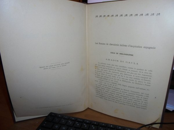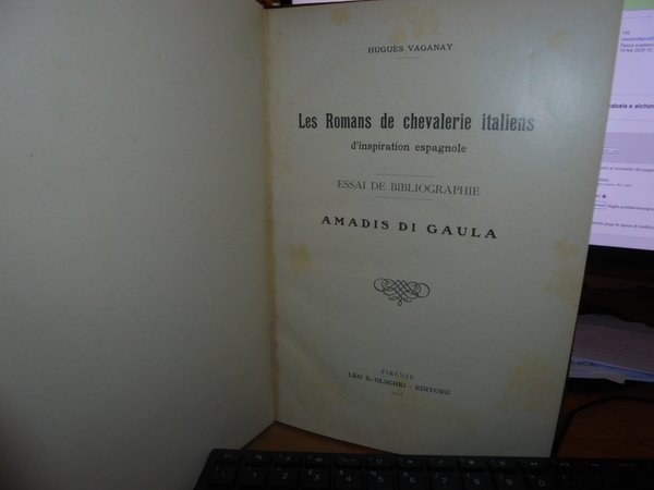 HUGUES VAGANAY. Firenze, Leo S. Olschki Editore, 1915. Les Romans de Chevalerie Italiens d' inspiration espagnole. In-4°, tela marron con titolo in oro al dorso. 172 pp. Estratto dai volumi XII-XVII della Bibliofilia. Ottimo esemplare. Uff. E - IV - 6 - 2