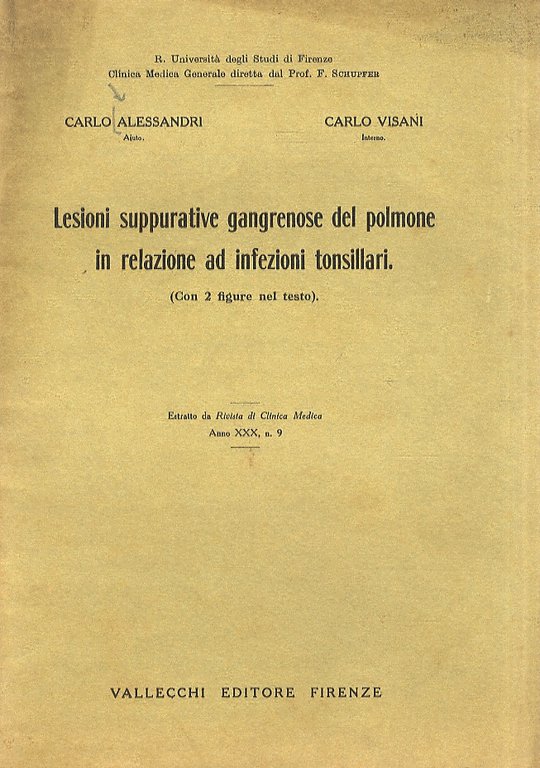 Lesioni suppurative gangrenose del polmone in relazione ad infezioni tonsillari. Estratto da Rivista di Clinica Medica, anno XXX, n. 9.
