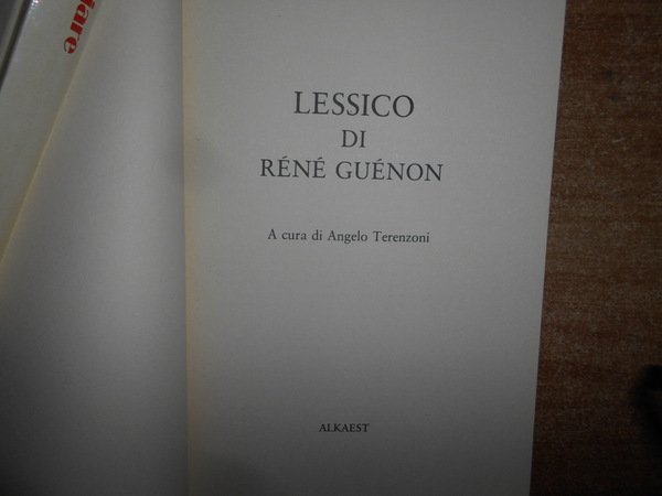 a cura di Angelo Terenzoni. Genova, Alkaest, 1983. LESSICO di René Guénon. In-8° piccolo, cartoncino ill a col. 338 pp. In ottimo stato di conservazione. Neg. esot. mob. 70 entro busta trasp.