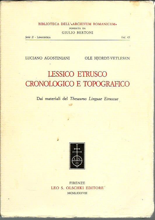 Lessico etrusco cronologico e topografico. Dai materiali del «Thesaurus Linguae Etruscae»