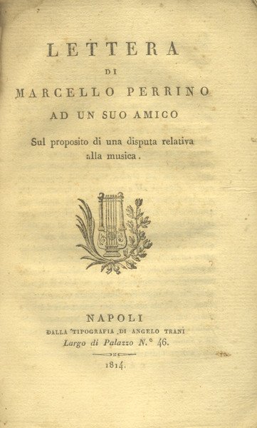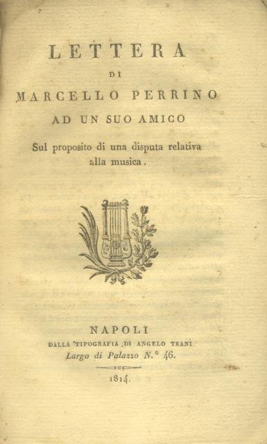 LETTERA DI MARCELLO PERRINO AD UN SUO AMICO SUL PROPOSITO DI UNA DISPUTA RELATIVA ALLA MUSICA.