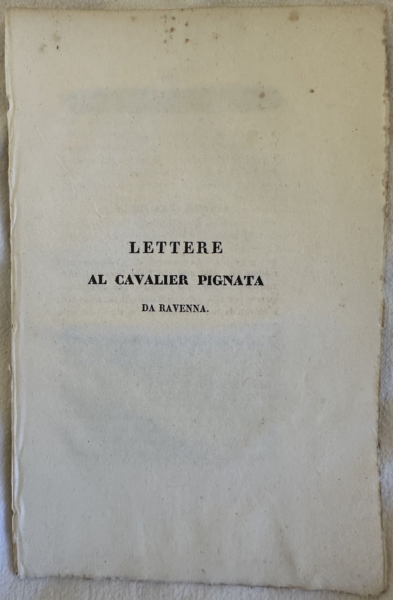 LETTERE AL CAVALIER PIGNATA DA RAVENNA