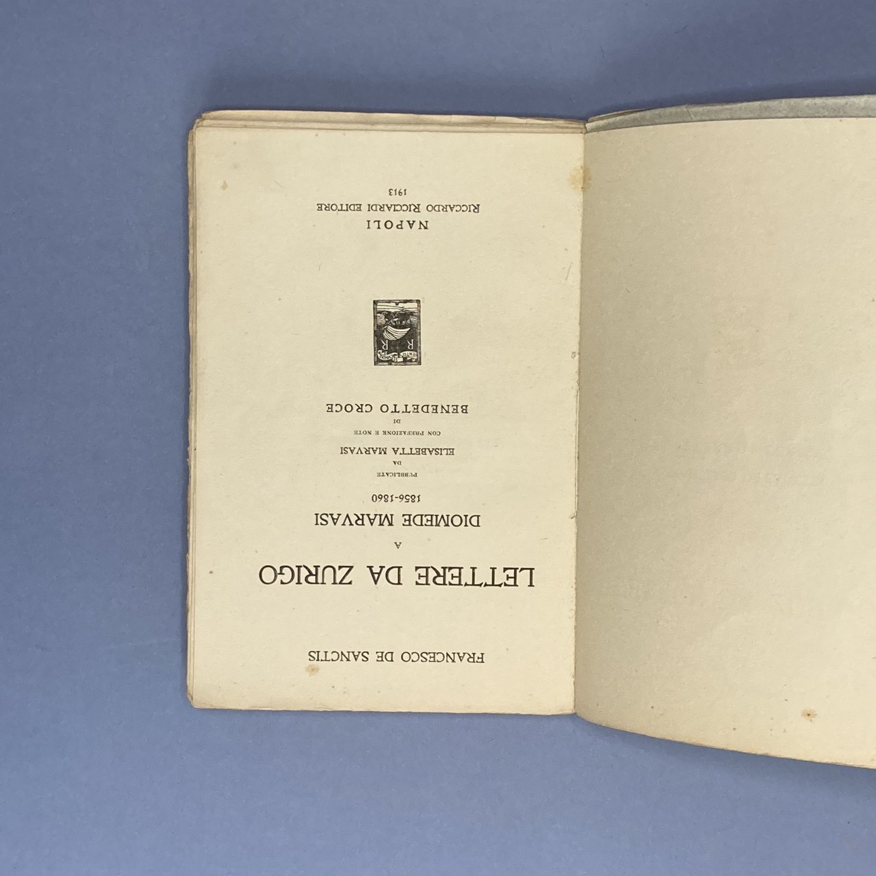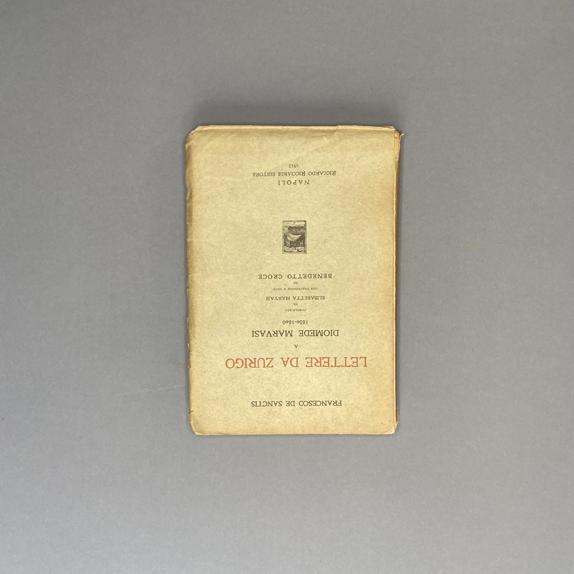 Lettere da Zurigo a Diomede Marvasi 1856-1860. Pubblicate da Elisabetta Marvasi con prefazione e note di Benedetto Croce.