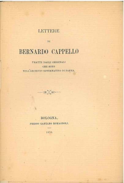 Lettere di Bernardo Cappello tratte dagli originali che sono nell'archivio governativo di Parma. Scelta di curiosità letterarie inedite o rare dal secolo XIII al XVII in appendice alla collezione di opere inedite o rare