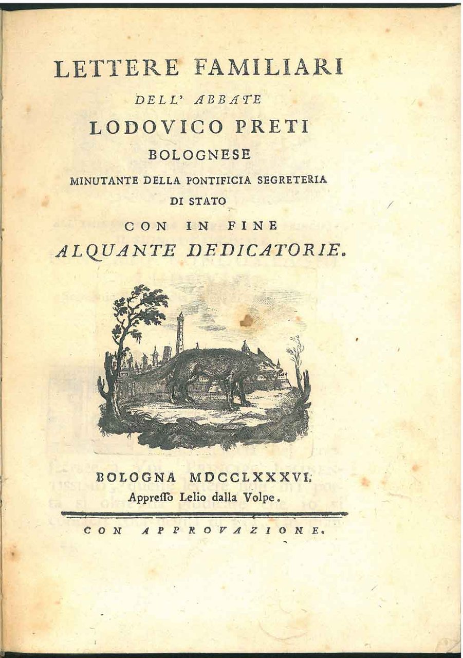 Lettere familiari dell'abate Lodovico Preti bolognese minutante della pontificia segreteria di Stato con in fine alquante dedicatorie