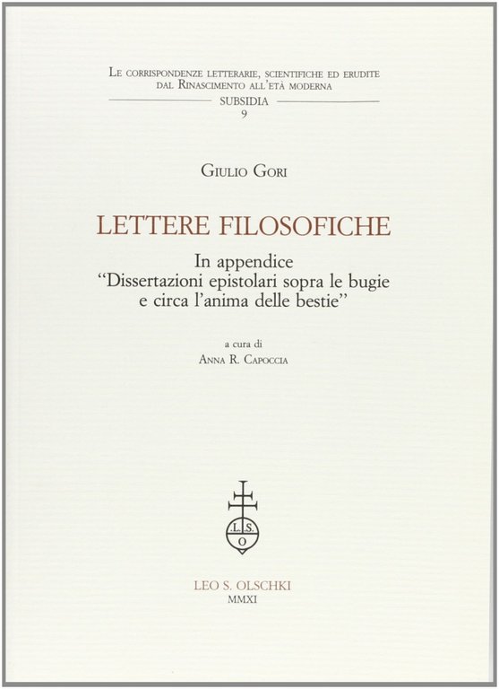 Lettere filosofiche. In Appendice dissertazioni epistolari sopra le bugie e circa l'anima delle bestie, Firenze, Casa Editrice Leo S. Olschki, 2012 | Libri antichi e moderni | Gori Giulio, Capoccia A. R.