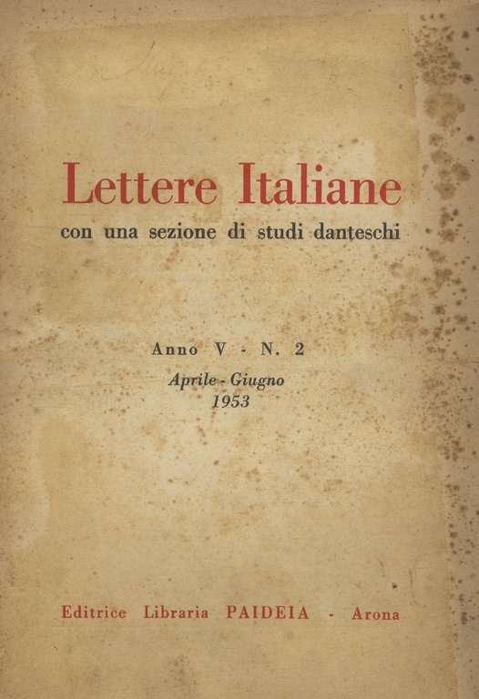 Lettere italiane. Con una sezione di studi danteschi. Rivista trimestrale. Direttore responsabile: Giuseppe Scarpat. Anno V. N. 2. Aprile-Giugno 1953.