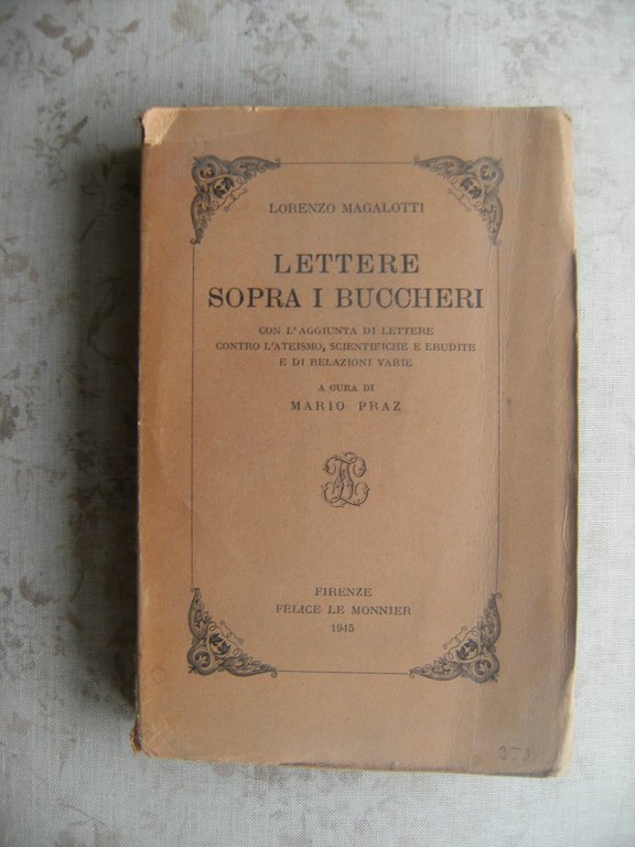 LETTERE SOPRA I BUCCHERI. CON L'AGGIUNTA DI LETTERE CONTRO L'ATEISMO, SCIENTIFICHE E ERUDITE E DI RELAZIONI VARIE - A CURA DI MARIO PRAZ | Libri antichi e moderni | LORENZO MAGALOTTI