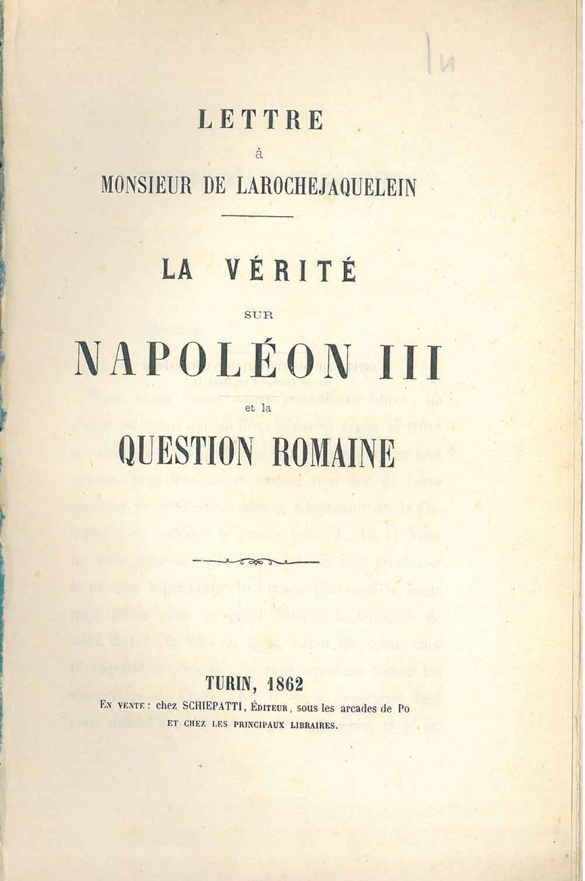 Lettre à Monsieur de Larochejaquelein. La verité sur Napoleon III et la question romaine