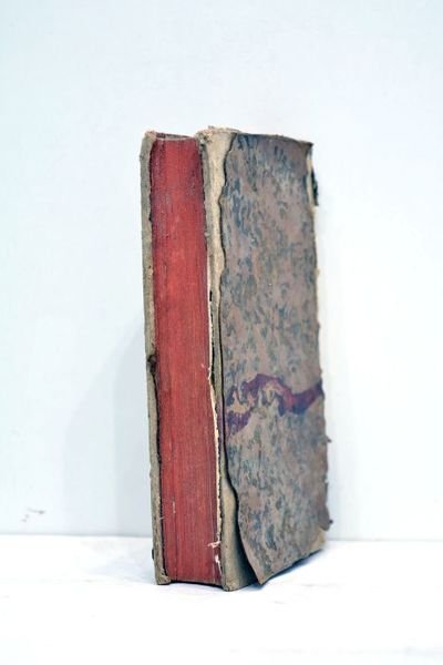 Tome 4 seul. VIII. 386 pages. (15x9cm). Pleine basane. Tranches rouges. Gardes de papier marbré. Reliure très abîmée. Dos manquant. Charnières fendues. Plats partiellement dépourvus de son cuir. Manques de cuir très importants. Coins entièrement émoussées. Taches sur le plat inférieur. Légères traces de mouillure à l'intérieur. Quelques rousseurs. Travaux de ver avec perte de quelques lettres touchant la moitié de l'ouvrage. Défauts d'usage. La reliure mérite une très importante restauration. Par contre, l'intérieur, à exception de quelques travaux de ver, est bien conservé.