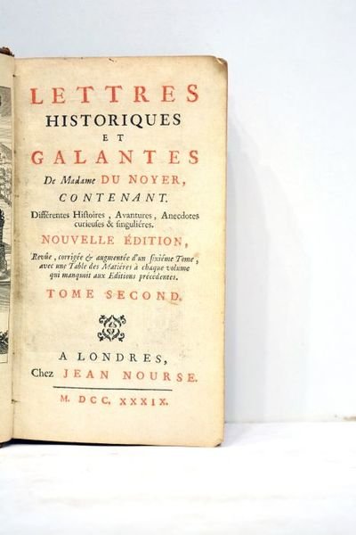 Lettres historiques et galantes contenant différentes histoires, aventures et anecdotes curieuses et singulaires. Nouvelle édition revue, corrigée et augmentée d'un sixième tome, avec une table des matières à chaque volume qui manquait aux éditions précédentes. Tome second.