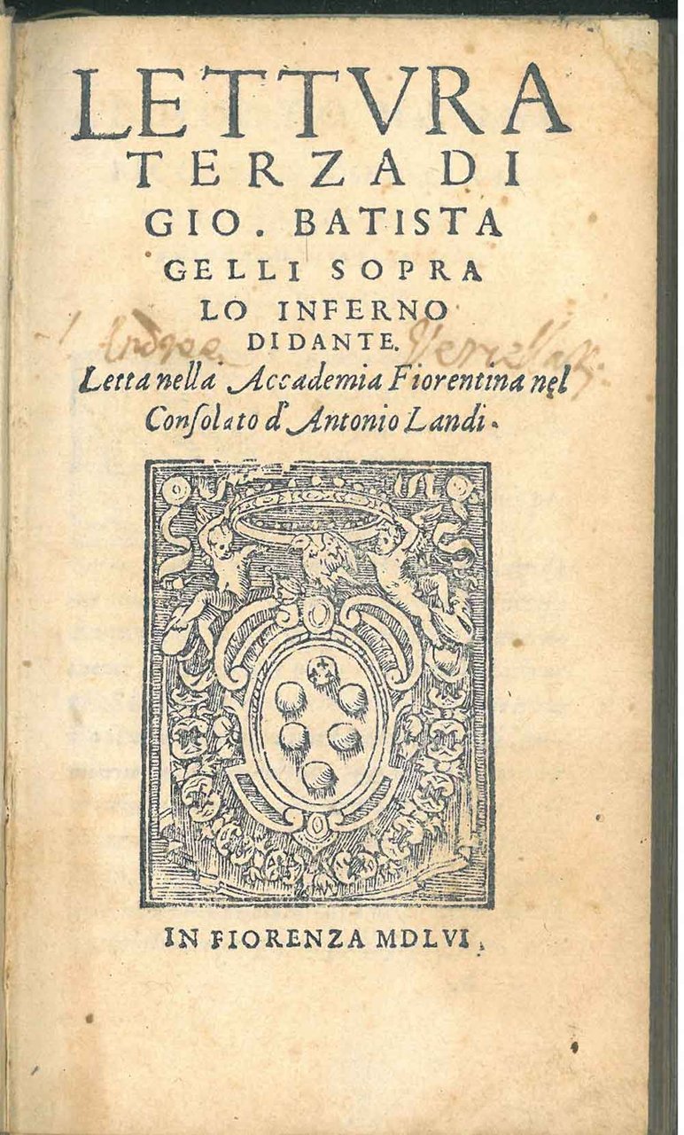 Lettura terza di Gio. Batista Gelli sopra lo Inferno di Dante. Letta nella Accademia Fiorentina nel Consolato d'Antonio Landi